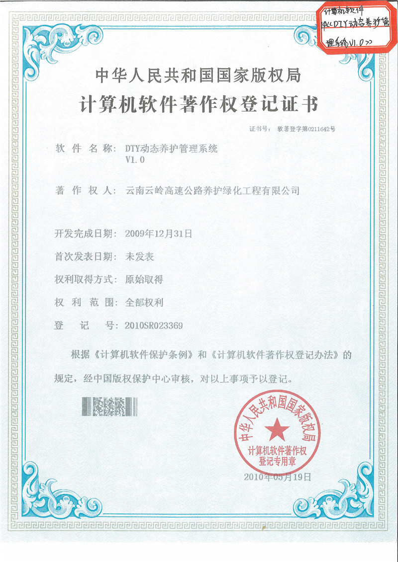 《DTY动态养护管理系统V1.0》