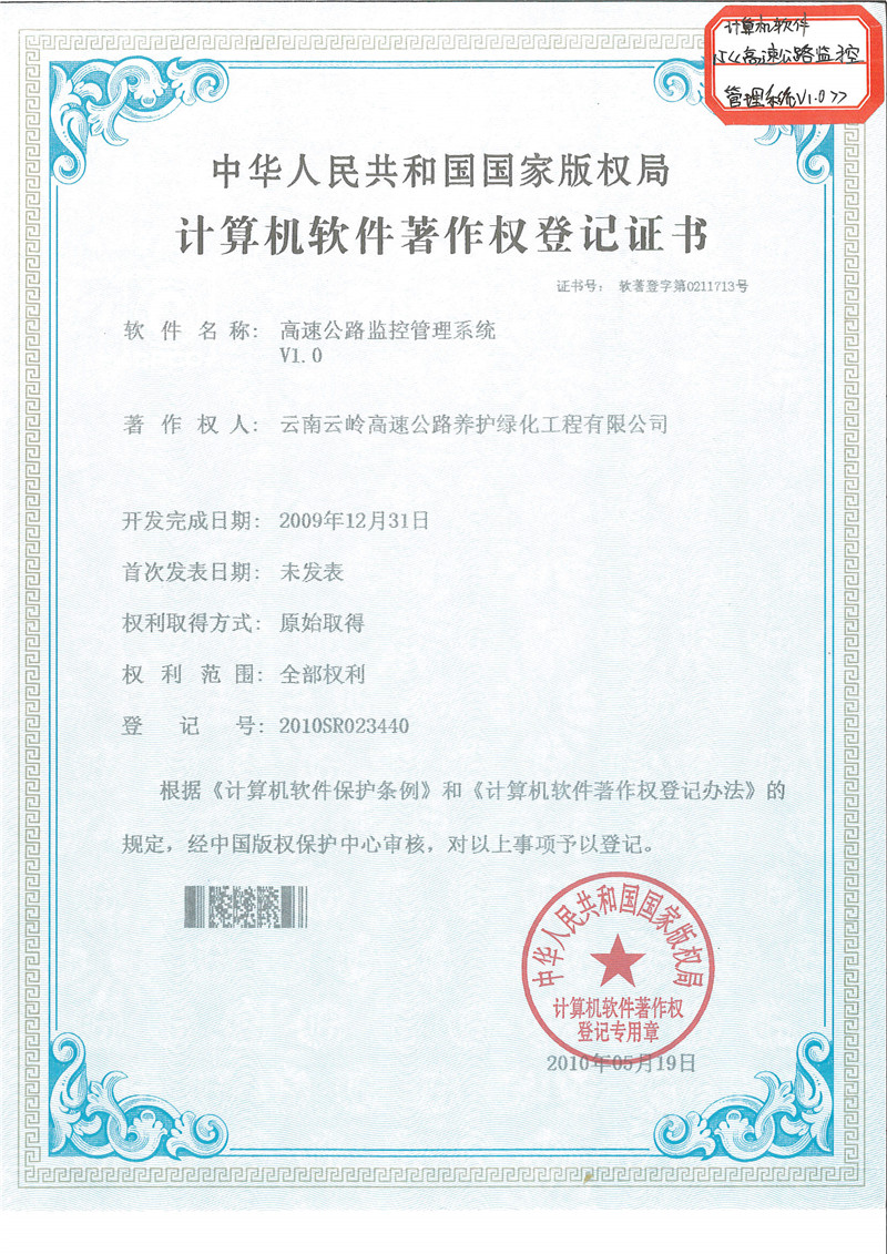 《高速公路监控管理系统V1.0》
